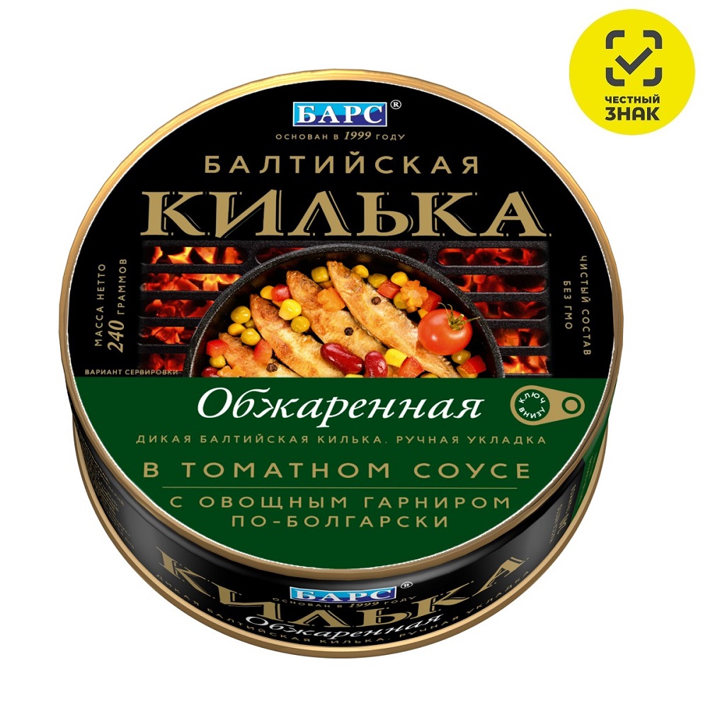 Состав: Килька балтийская, морковь, кукуруза, фасоль, перец красный сладкий, горошек зеленый, паста томатная, сахар, масло растительное , лук, мука пшеничная, соль, регулятор кислотности-кислота уксусная, экстракт пряностей. Пищевая ценность на 100 грамм: белки 11 г, жиры 10 г, углеводы 4 г. Энергетическая ценность - 150 Ккал.