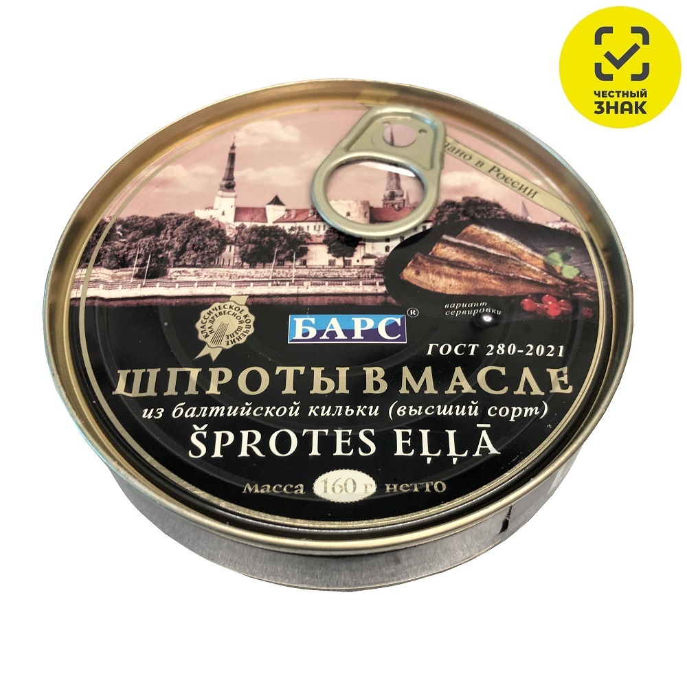 Состав: Килька балтийская копченая, масло подсолнечное , масло горчичное, соль. Пищевая ценность на 100 грамм: белки 18 г, жиры 28 г. Энергетическая ценность - 320 Ккал