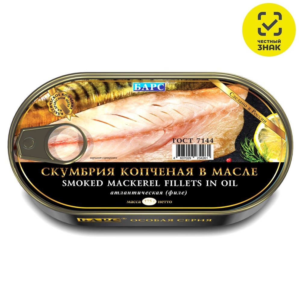 Скумбрия атл (африканская пятнистая) копченая в масле (филе)