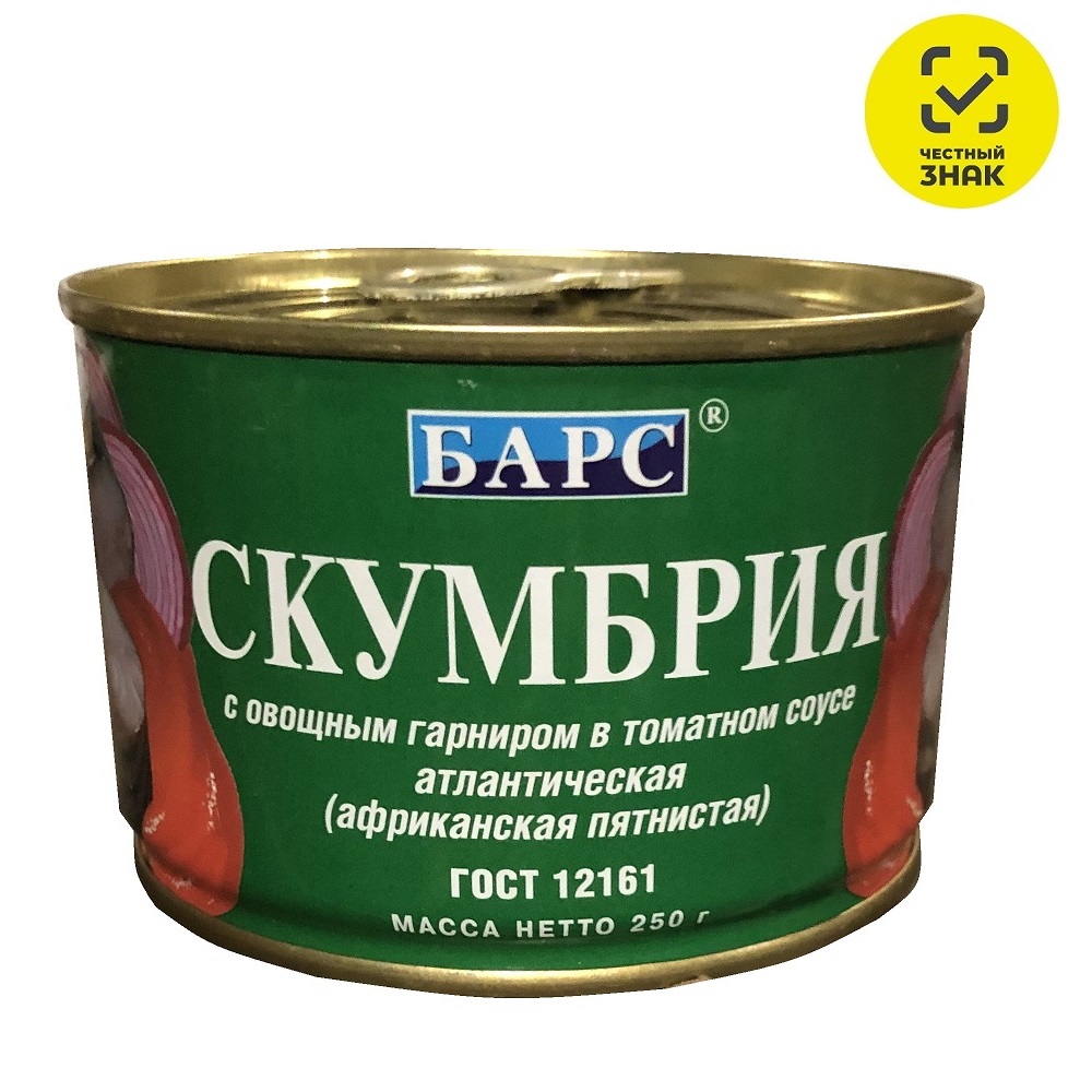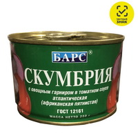 Состав: Скумбрия, овощной гарнир(морковь, лук) томатный соус (паста томатная, сахар, масло растительное, лук, мука пшеничная, соль, регулятор кислотности-уксусная кислота, экстракт пряностей). Пищевая ценность на 100 грамм: белки 15 г, жиры 11 г, углеводы 6 г. Энергетическая ценность - 180 Ккал.