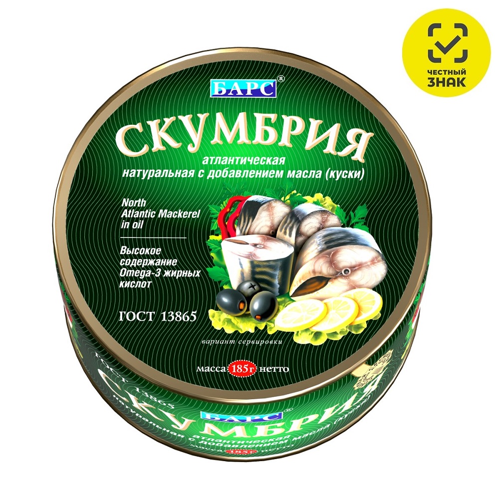 Скумбрия атлантическая с добавление масла (куски) банка №38
