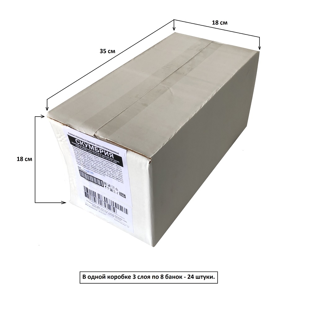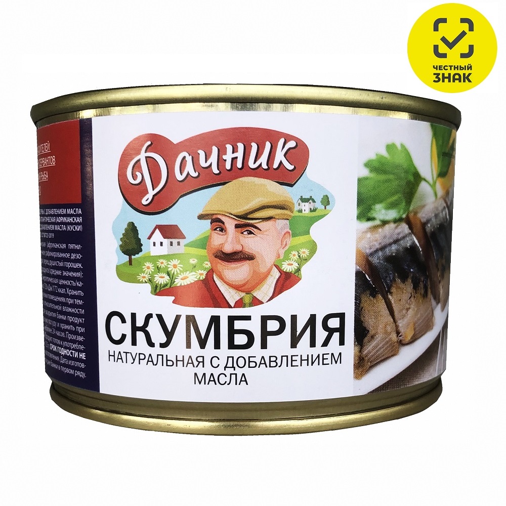 Состав: Скумбрия атлантическая (африканская пятнистая) куски, масло подсолнечное рафинированное дезодорированное, соль пищевая, перец душистый горошек. Пищевая ценность на 100 грамм: белки 15 г, жиры 12,4 г. Энергетическая ценность - 172 Ккал.