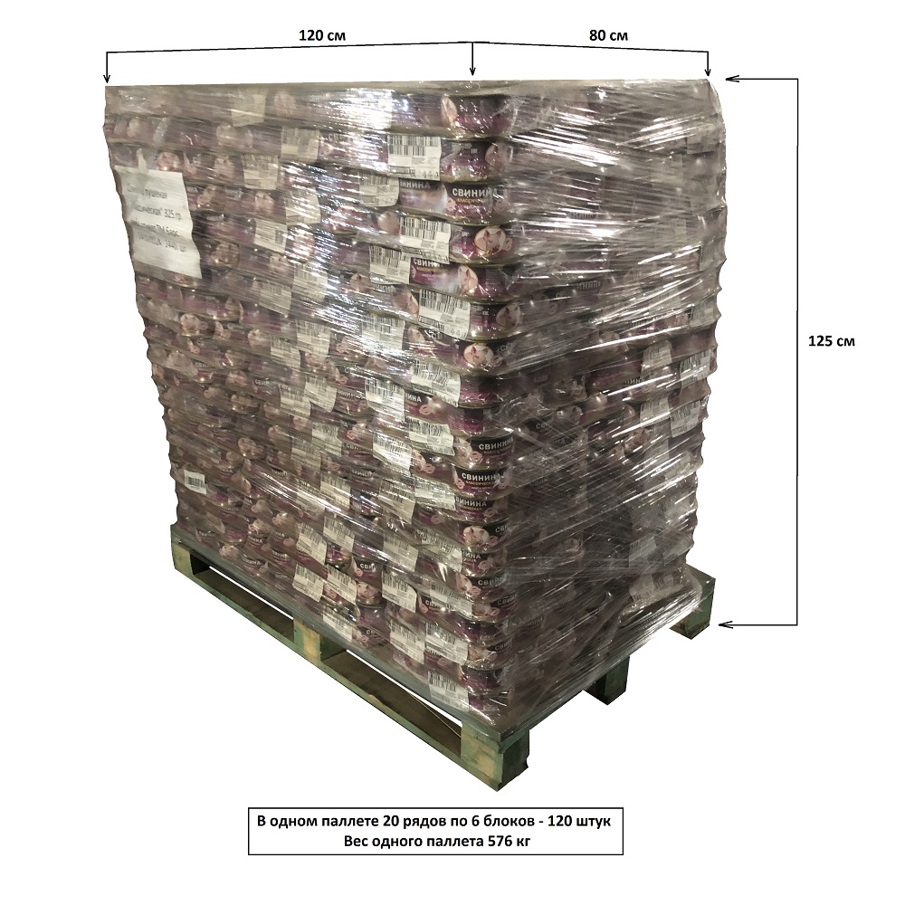 Состав: Свинина, жир свиной, вода, лук, соль, перец черный молотый, лист лавровый, стабилизатор Е407, загуститель Е425, желирующий агент Е508, мальтодекстерин. Пищевая ценность на 100 грамм: белки 8 г, жиры 23 г, углеводы 0,3 г. Энергетическая ценность - 240 Ккал.