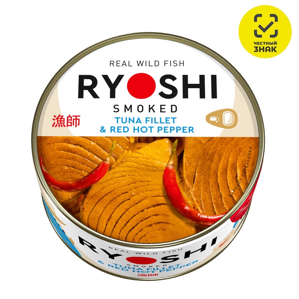 Состав: Тунец копченый, масло растительное, соль, перец красный (паприка), перец красный Чили, экстракт красного перца стручкового. Пищевая ценность на 100 грамм: белки 20 г, жиры 28 г. Энергетическая ценность - 330 Ккал.